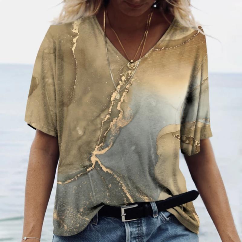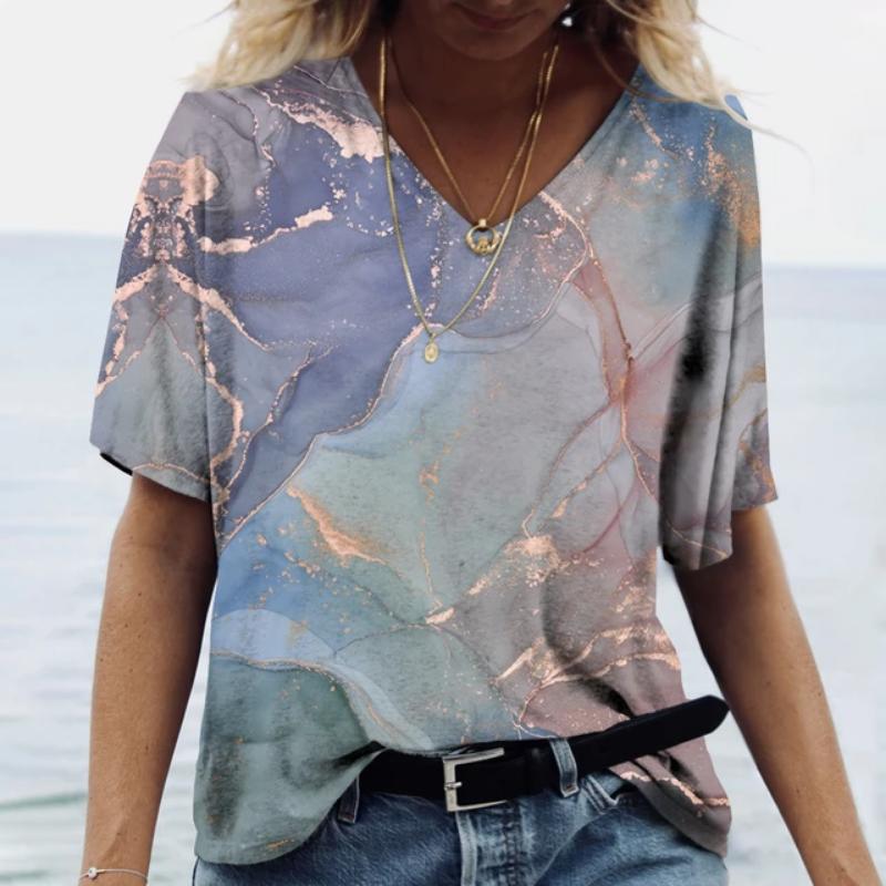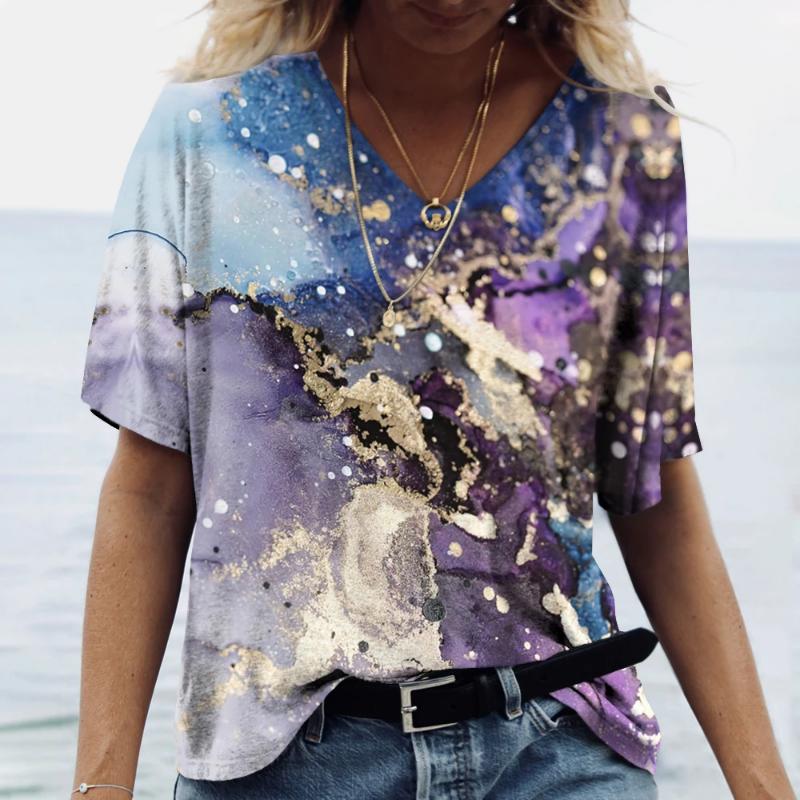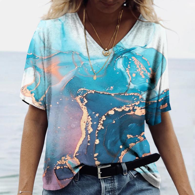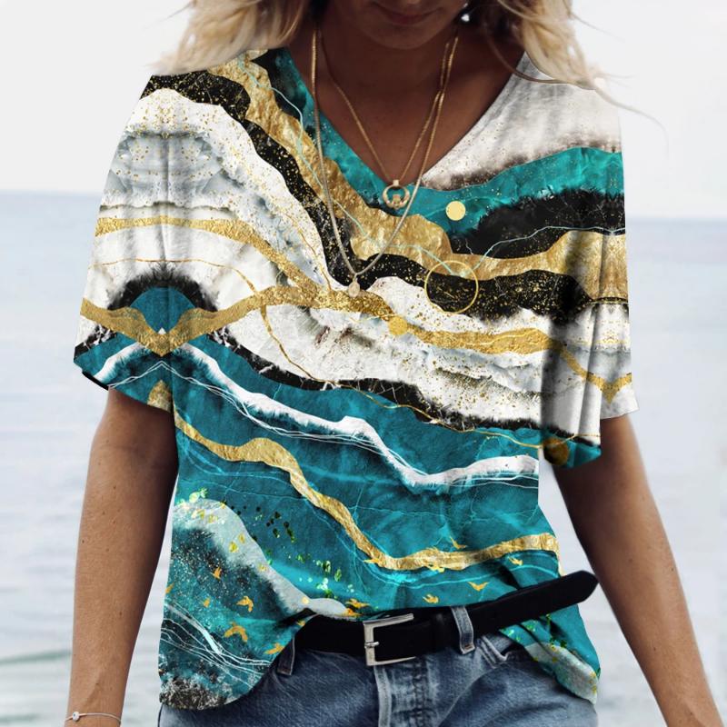 2024 Женская футболка с V-образным вырезом 3D Красочные Модные Y2K Street Женские свободные спортивные футболки большого размера Женские футболки Топы