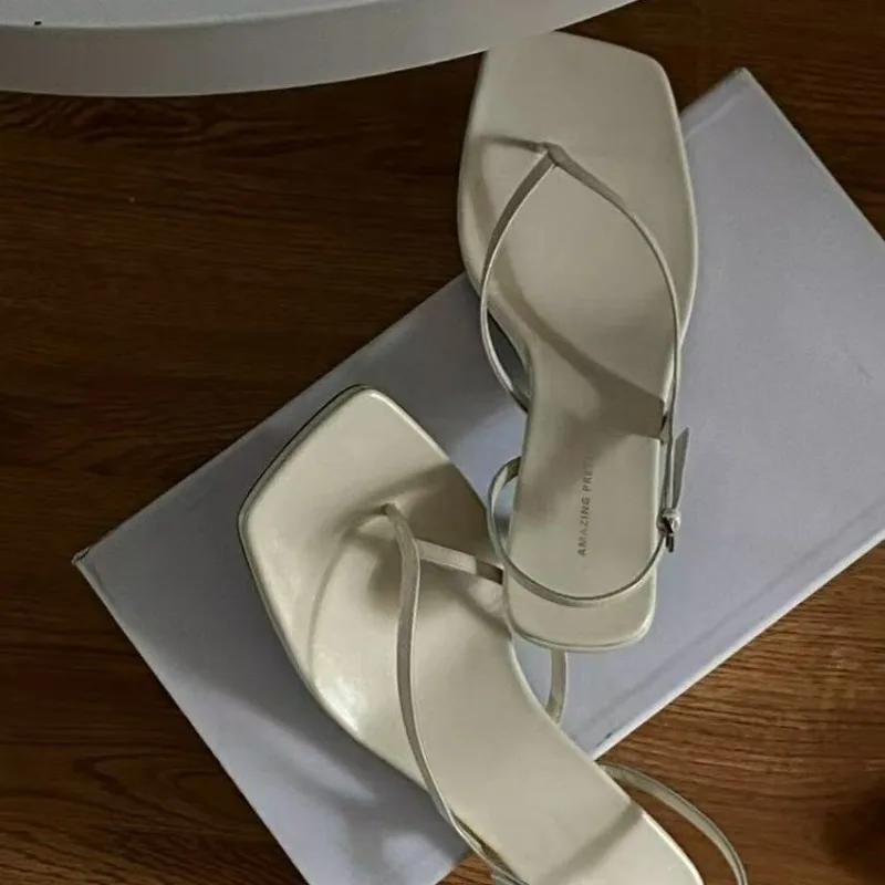 Новые французские босоножки на среднем каблуке с узором «елочка» для женской летней верхней одежды, босоножки с открытым носком и зажимом на высоком каблуке