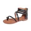 Модные повседневные сандалии на плоской подошве для женщин, женская обувь больших размеров, новый стиль, плетеная резинка для ног, римская пляжная обувь