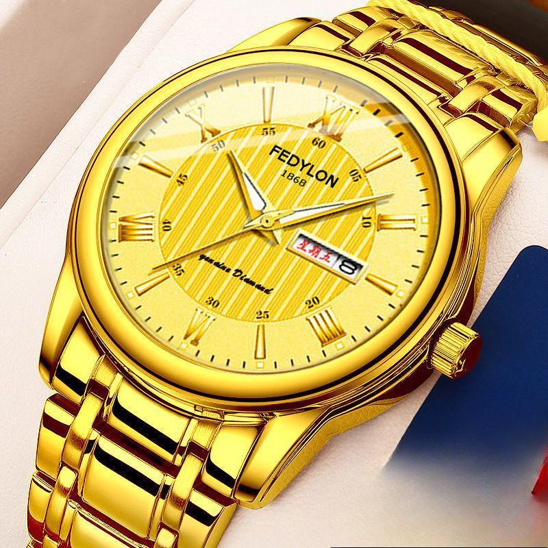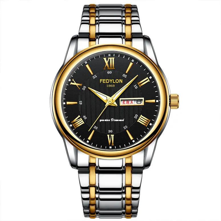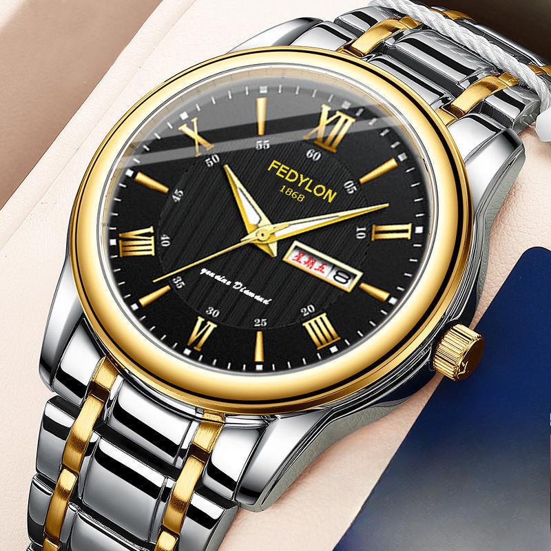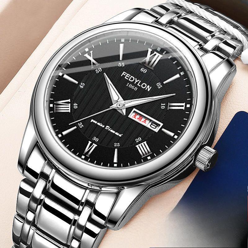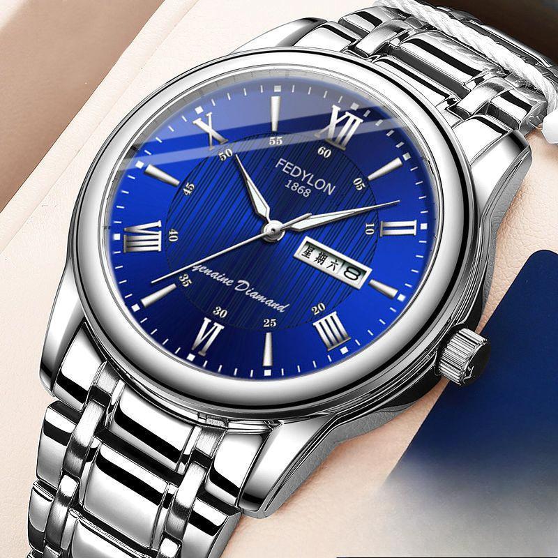 Полностью автоматические водонепроницаемые немеханические кварцевые часы с двойным календарем, светящиеся корейские часы со стальным ремешком