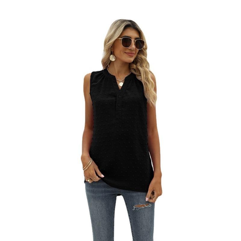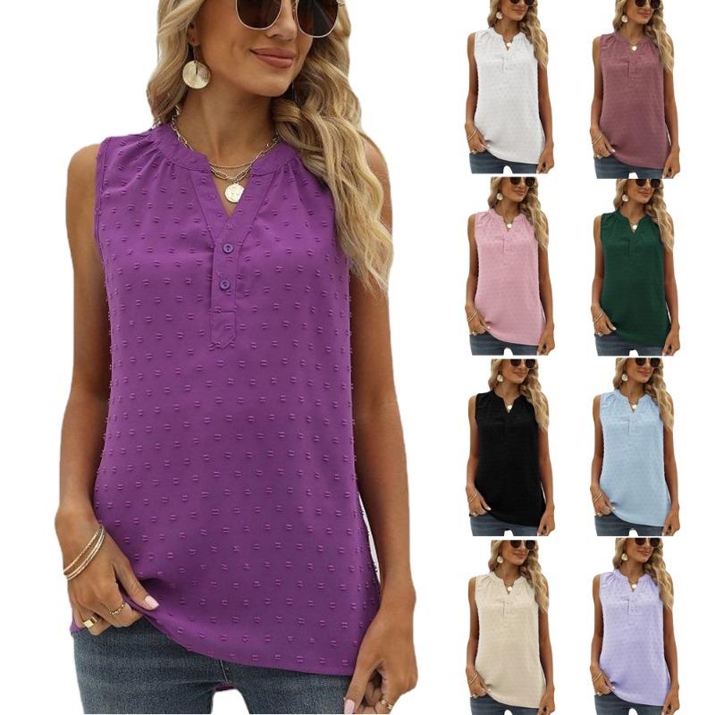Женские летние блузки и рубашки, однотонный свободный жилет без рукавов с V-образным вырезом и рукавами в стиле casual