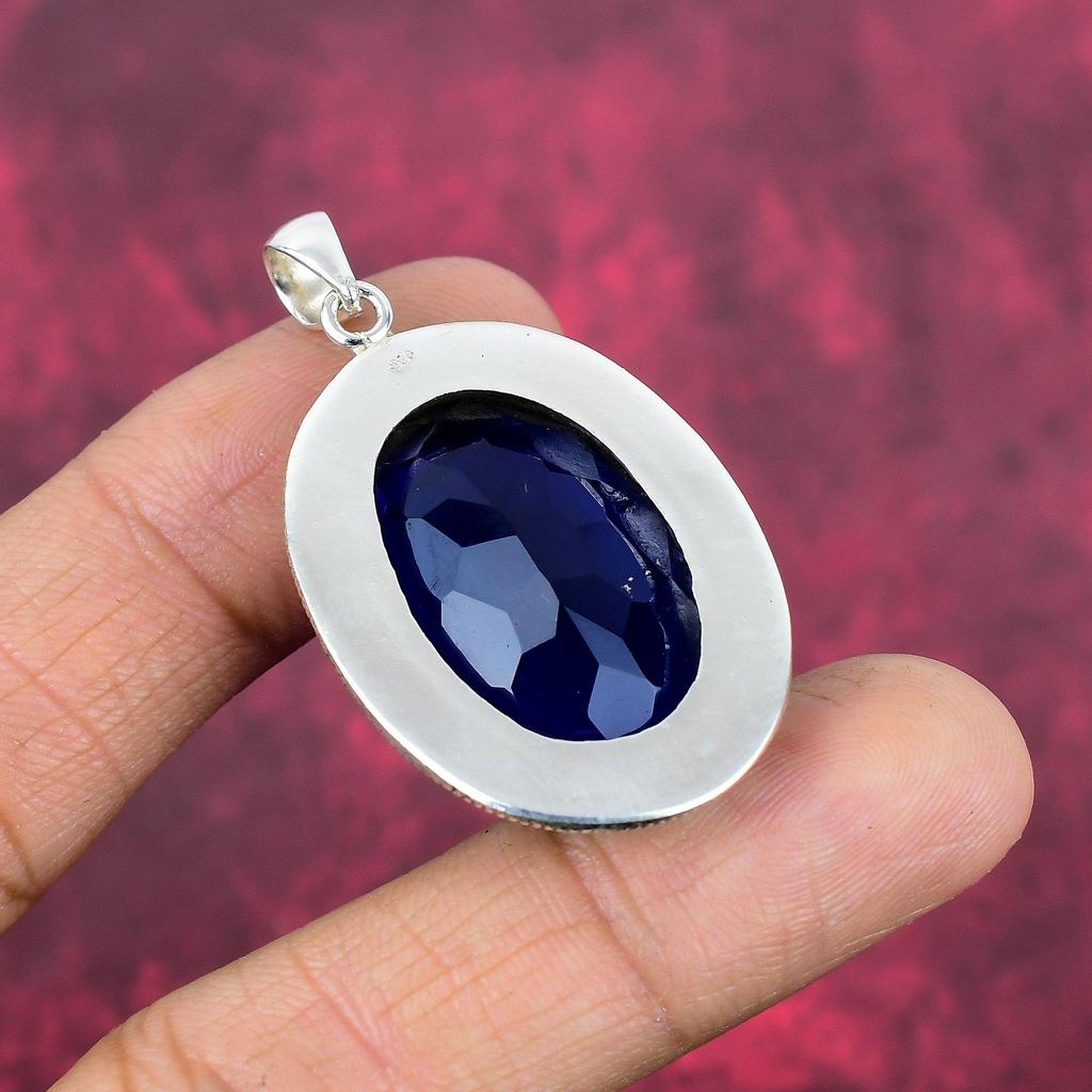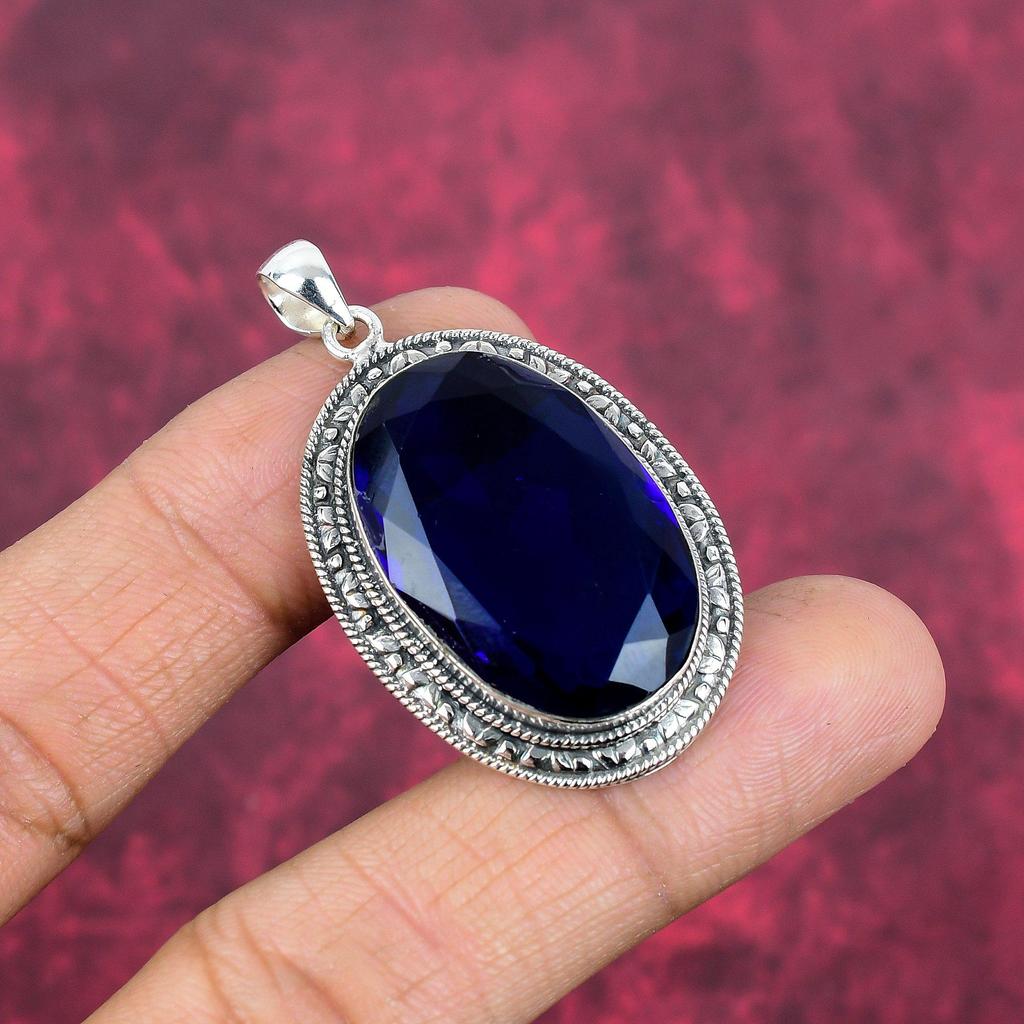 Подвеска с синим сапфиром, подвеска из драгоценного камня ручной работы, подвеска из стерлингового серебра 925 пробы, антикварные ювелирные изделия, для подарка на помолвку
