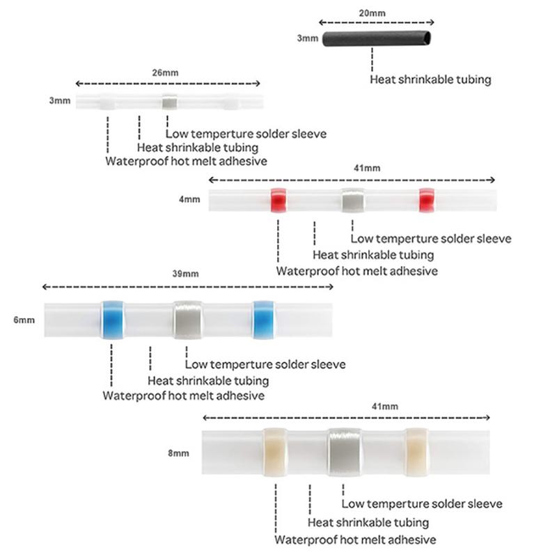1 комплект термоусадочных соединителей, гильзы, клеммы, электрические стыковые соединители, соединители для проводов, пайка, изолированный кабель
