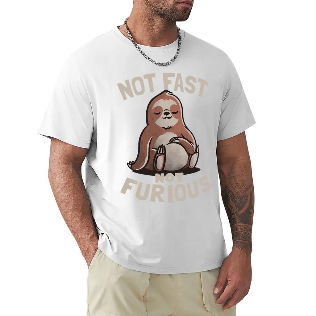 Not Fast Not Furious Kawaii Ленивец Одежда с принтом Мужские уличные футболки большого размера Дышащая хлопковая уличная футболка для творчества
