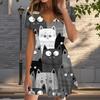 Летняя мода женские V-образный вырез короткий рукав Китти принтованное платье сексуальные короткие юбки платья