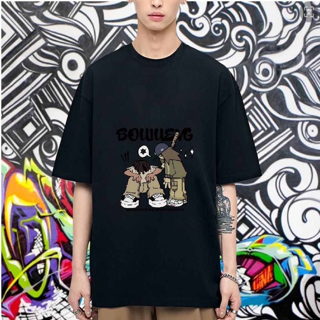 Мужская футболка свободного покроя с надписью «Уличная одежда» в стиле хип-хоп в стиле Харадзюку, винтажная, для двух мальчиков, с короткими рукавами, эстетическая одежда