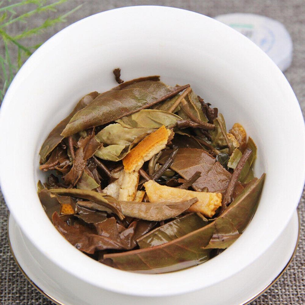 Белый чай с кожурой мандарина, прессованный, выдержанный в провинции Юньнань, небольшие чайные лепешки