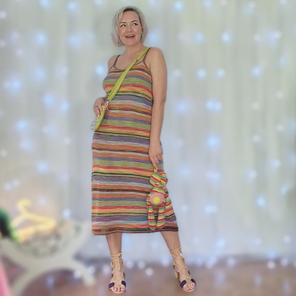 Трикотажный сарафан к полоску. Привет! Очень классная модель сарафан которую я уже активно ношу и мне очень нравится! Буду и вам рекомендовать. ‼️Добавила разговорное видео посмотрите перед покупкой там больше деталей ‼️ Ткань: Трикотаж. Приятный, мягкий, хорошо тянется, не жаркий. Дизайн: Классический сарафан, без замков и молний. На мою фигуру садится свободно. Брители не регулируются. Размер: На мне единый размер. Мои параметры : рост 172 см 98/76/106 см Детали: Длина 126 см ОГ 98 до 128 см ОТ 94 до 140 см ОБ 106 до 140 см Резюмирую: Удачное приобретение! Мне нравится носить этот сарафан с чем то ещё например с рубашка и или джинсовыми куртками. Рекомендую 👍 Я не прощаюсь, M_K #радужный_сарафан