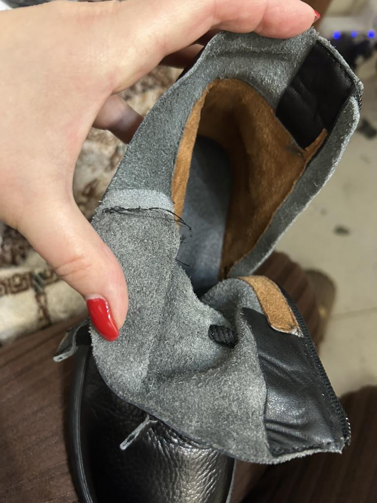 Заказывала сапожки тёплые, зимние, с мехом, 41 размер, на светлой подошве. Думала, зимой пофаршу.Пришли без меха, одна кожа, размер 40. Палец впритык. Будем надеяться, что разносятся малость. Зачем заказываем, что нам нужно? Отправляйте товар уж вы от балды, что вам хочется. А сами сапожки хорошие.