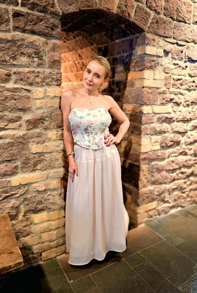 Отличная летняя шифоновая юбочка🥰! Цвет очень нежный, слегка розоватый🌹, с лёгким блеском, напоминает жатый шифон, очень красиво струится. На рост до 165см длина в пол, размер единый, но в идеале на талию до 85см. Юбка красиво смотрится, можно включать её как в повседневные, так и более вечерние образы, можно в такой и на прогулку💖 выйти, и на коктейльное🍸мероприятие надеть, без повреждений, продавцу спасибо🤗, рекомендую, очень понравилась🥰