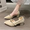 Туфли-лодочки Женская обувь Острый носок Одинарная обувь Женский толстый каблук Новинка Жемчуг Универсальные Туфли с мелким вырезом Боковые вырезы Высокие каблуки Женские