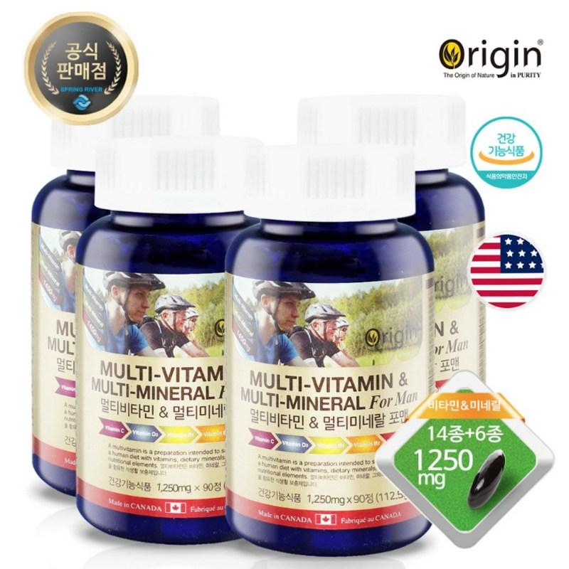 Мужской мультивитаминный комплекс для восстановления после усталости с цинком, магнием, витамином D, минеральными добавками, витамином B12 Spring River, 90 таблеток, 4 коробки