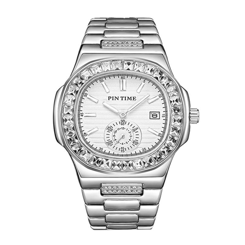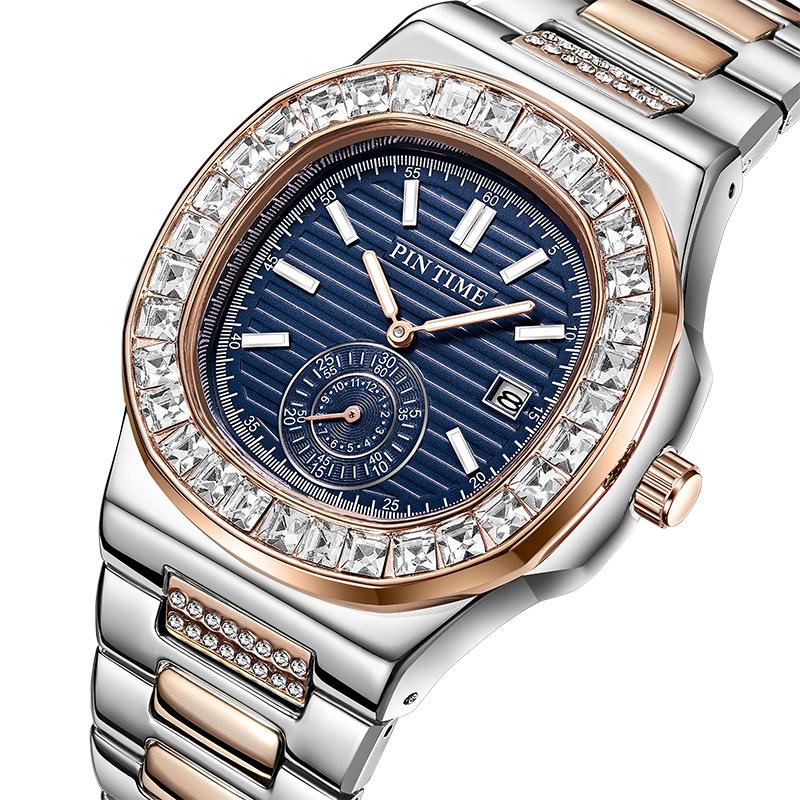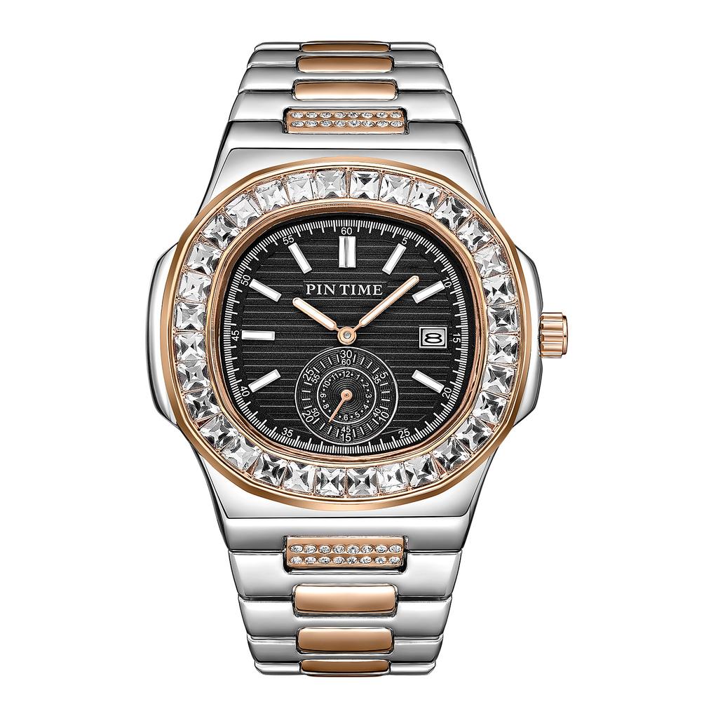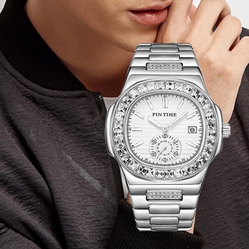 Мужские часы с крупным брендом в стиле хип-хоп с бриллиантами, модные, сплавные, ремешок с датой, золотые, роскошные, винтажные, кварцевые часы Montres De Marque De Luxe