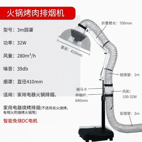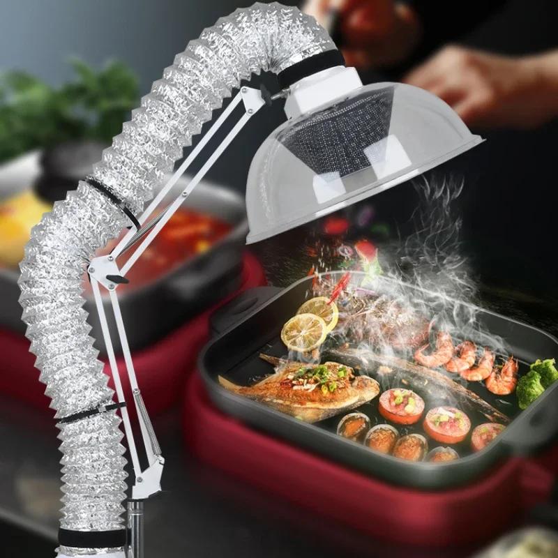Главная Простая вытяжка для барбекю Мобильный горячий горшок Устройство для вытяжки дыма для барбекю Корейское складное вытяжное оборудование