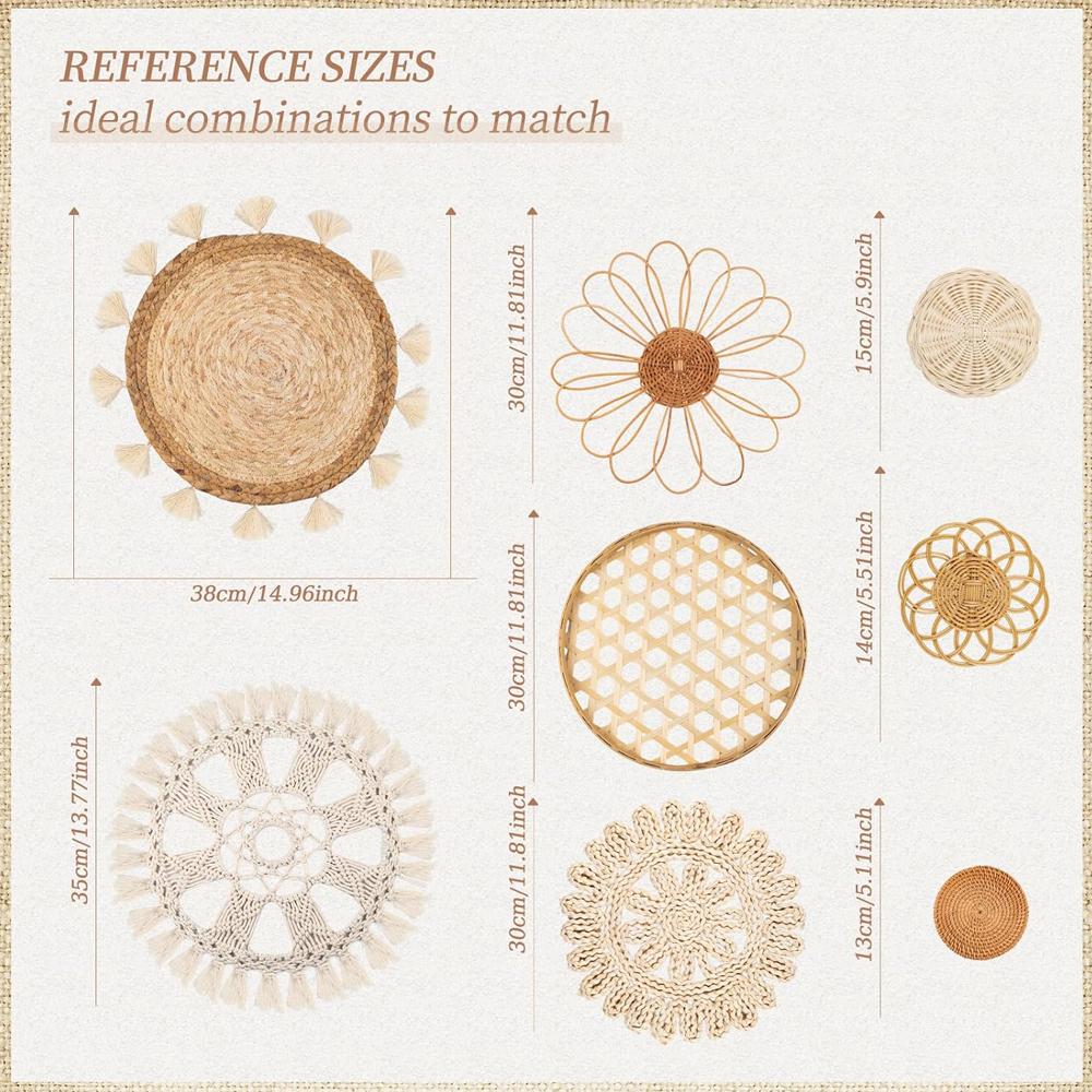 Декор для настенной корзины в стиле бохо, набор из 8 плоских плетеных корзин, настенное украшение, круглые кисточки, белый гобелен в стиле макраме, настенный декор, искусство ручной работы — купить товар онлайн с бесплатной доставкой по всему миру!