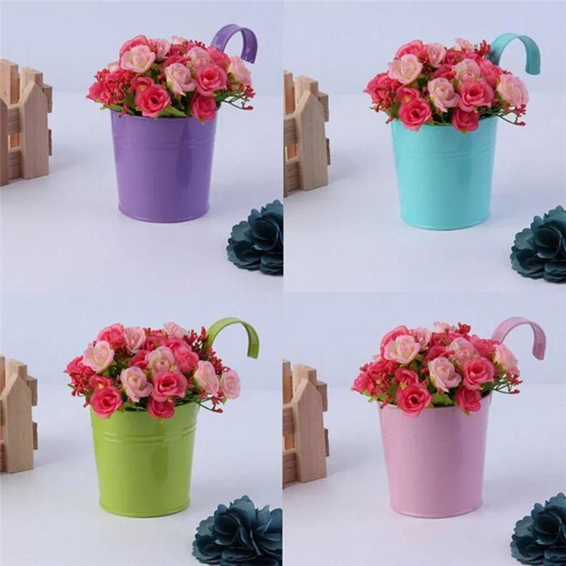 10 цветов металлический железный цветок настенный цветочный горшок для растений крючок ведро жестяной садовый горшок для цветов балкон подвесная корзина для суккулентов