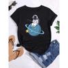 Футболка женская с принтом луны и планеты, модные футболки, повседневная, с круглым вырезом, с коротким рукавом, женская футболка в уличном стиле, винтажные топы