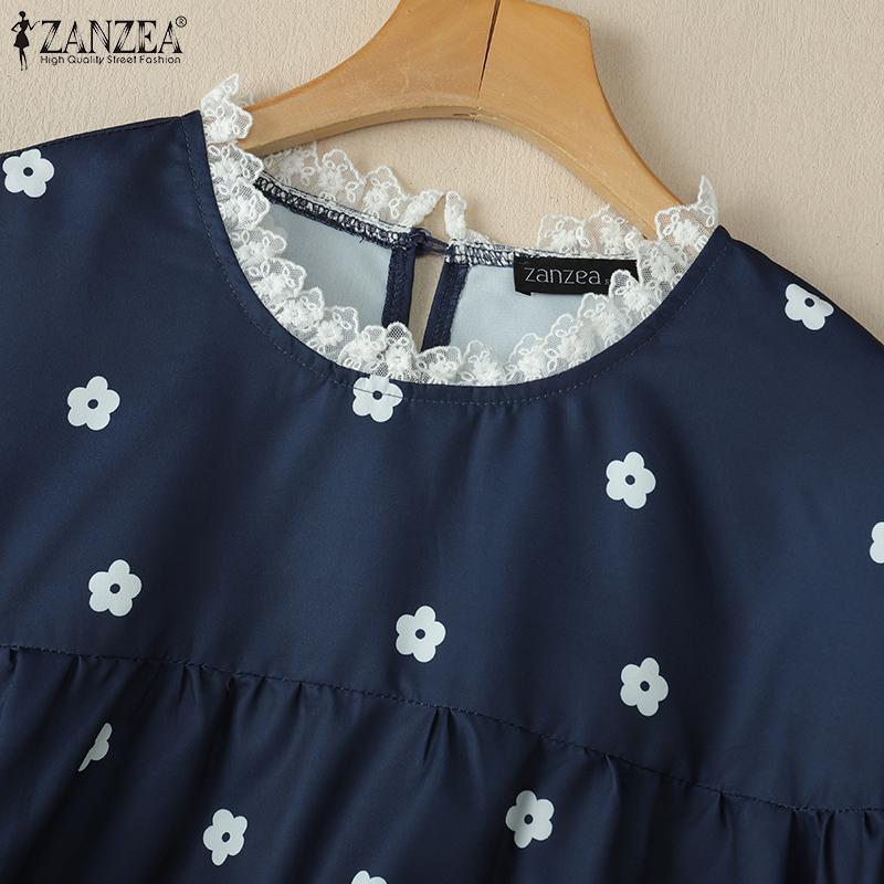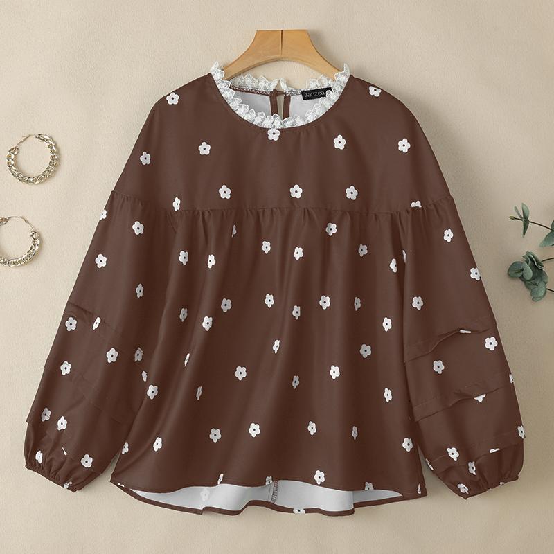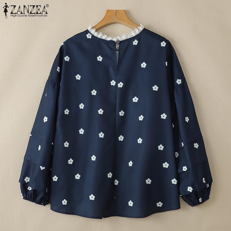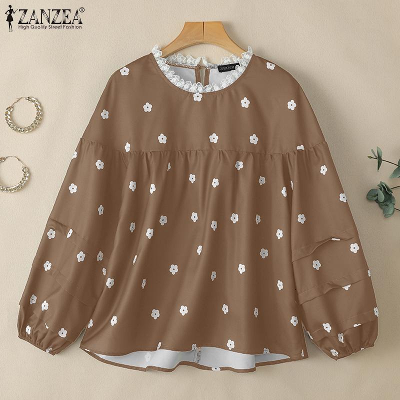 ZANZEA Женская кружевная сращиваемая круглая горловина с длинным рукавом Повседневная цветочная блузка
