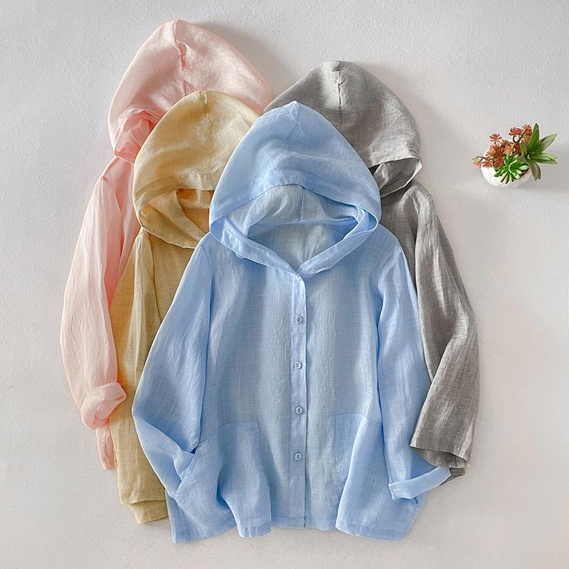 Тонкая льняная толстовка с капюшоном для женщин больших размеров, летняя модная, шикарная, элегантная, свободная, повседневная, для отдыха, с защитой от солнца, с кондиционером — купить товар онлайн с бесплатной доставкой по всему миру!