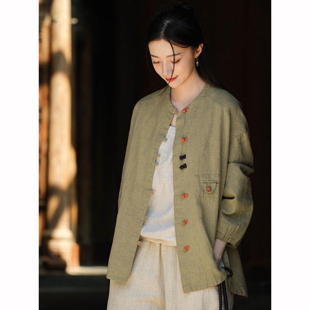 Весенняя хлопковая льняная женская одежда, рубашка из хлопка и льна в стиле ретро, женская кардиган-куртка на пуговицах с цветными блоками