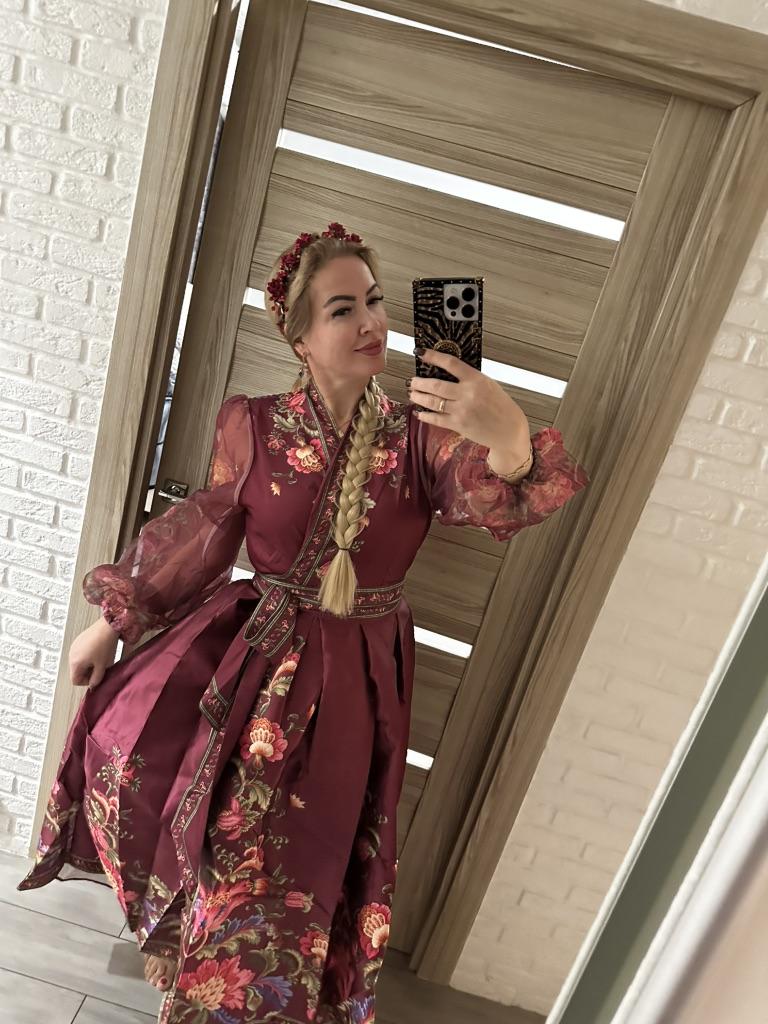 Очень нарядное, девица прям получилась русская нарядная. Только на обхват груди 107 заказывать надо хотя бы XL или L, там хватает запаса