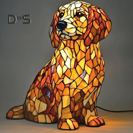 Искусство витражей в стиле ретро: Каждая лампа, вдохновленная собаками, демонстрирует замысловатые витражи, напоминающие винтажную эстетику, передающие игривую сущность любимых пород собак, таких как корги и французские бульдоги.
