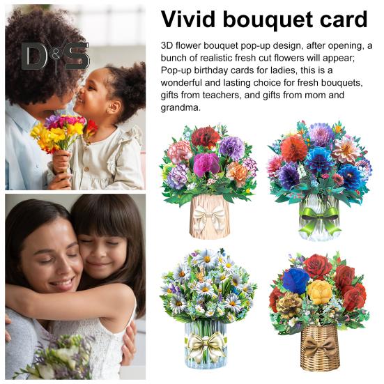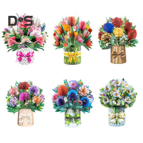 Изысканное мастерство: Эта поздравительная открытка с букетом цветов, тщательно изготовленная из прочной художественной бумаги, может похвастаться замысловатыми деталями и яркими цветами, что делает ее памятным подарком на всю жизнь.