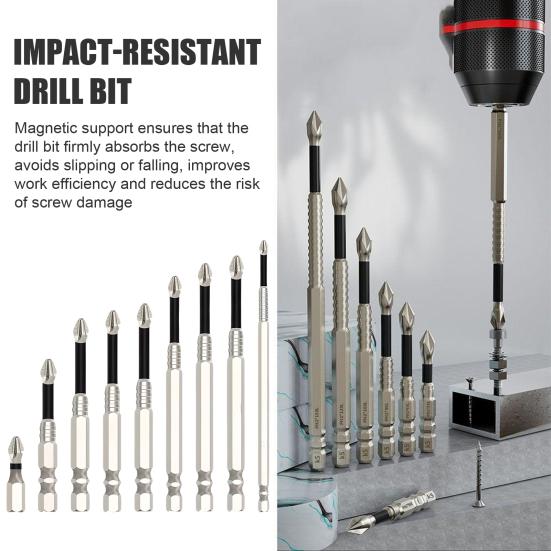 Мощный магнитный наконечник надежно удерживает винты на месте, предотвращая соскальзывание и повреждение, одновременно повышая эффективность работы.. Изготовленное из высококачественной легированной стали с твердостью до 60HRC, это сверло устойчиво к ударам и износу, идеально подходит для высокопрочных работ.. Доступны в различных длинах (25мм, 50мм, 65мм, 70мм, 75мм, 90мм, 100мм, 120мм, 150мм), он удовлетворяет разнообразные потребности в обслуживании, сборке и установке.