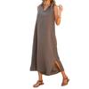 Это женское платье изготовлено из хлопкового льна и отличается свободным покроем для максимального комфорта.. Мягкая и легкая ткань обеспечивает ощущение уюта, которое вам не захочется снимать.. Это платье с V-образным вырезом и без рукавов, выполненное в простом однотонном цвете, излучает стильную и очаровательную атмосферу, позволяя вам легко выделиться..