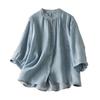 Представляем стильную женскую рубашку, универсальное дополнение к вашему гардеробу.. Эта рубашка, изготовленная из смеси хлопка и льна, не только дышащая и легкая, но и идеально подходит для летнего ношения..