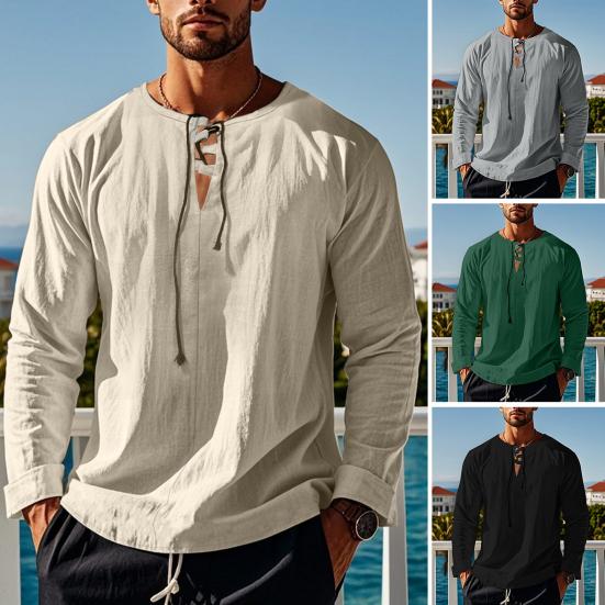 Представляем нашу мужскую рубашку с V-образным вырезом и бретелями — простое и стильное дополнение к вашему гардеробу.. Этот свободный топ с длинными рукавами, выполненный из мягкой и дышащей хлопковой смеси, обеспечивает комфорт и стиль.. Эта универсальная рубашка, доступная в различных цветах, легко сочетается с повседневными брюками, джинсами или кроссовками, создавая непринужденный образ..