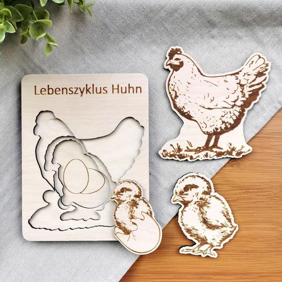 Привлекательный образовательный опыт: Исследуйте увлекательный мир жизненных циклов с помощью этой деревянной головоломки.. Каждый слой наглядно отображает стадии роста курицы, стимулируя любопытство и стремление к обучению у детей в возрасте от 3 до 5 лет.