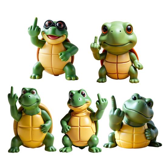 Добавьте нотку веселья и настроения в свое пространство с помощью этого украшения из смолы.. Изготовленные из высококачественной смолы, каждое украшение в виде черепахи на среднем пальце расписано вручную до совершенства, демонстрируя индивидуальность и позы.. Познакомьтесь с отрядом черепашек, которым надоели ваши глупости. Эти нахальные малыши идеально подойдут для столов, полок, подарков или просто для того, чтобы передать тонкое сообщение, не произнося ни слова..
