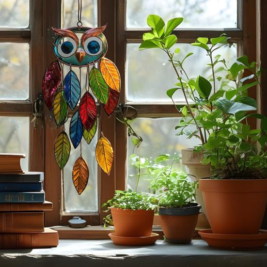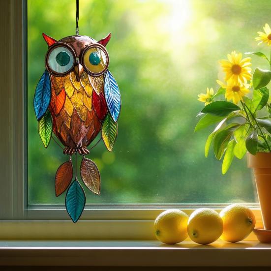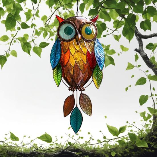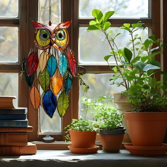 Придайте своему дому или саду причудливый шарм с помощью этих разноцветных подвесок в виде сов, изготовленных вручную.. Изящно спроектированные, они грациозно покачиваются на ветру или сверкают на солнце, привнося в окружающую обстановку яркие краски и радость.
