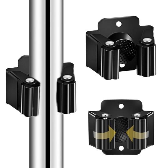 Противоскользящий зажим надежно удерживает предметы на месте, подходит для швабр любого размера благодаря своей гибкой и эластичной конструкции.. Откройте для себя ухоженное подсобное помещение, где инструменты удобно хранятся и легкодоступны.