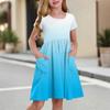 Детская юбка с круглым вырезом и коротким рукавом, платье принцессы, модное повседневное платье с карманами для девочек