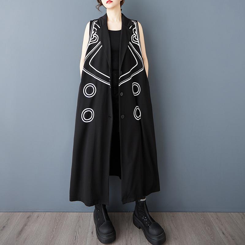Хлопковый черный винтажный повседневный свободный длинный плащ без рукавов большого размера для женщин Верхняя одежда