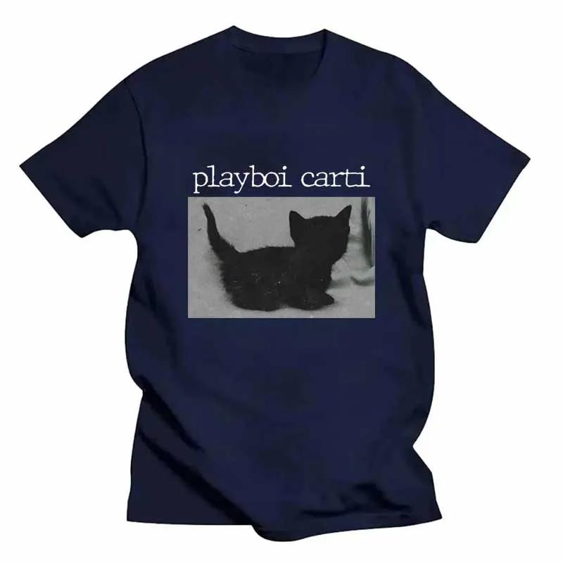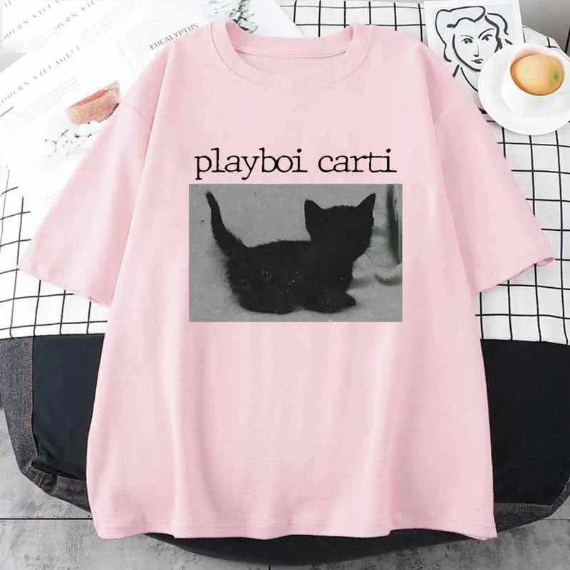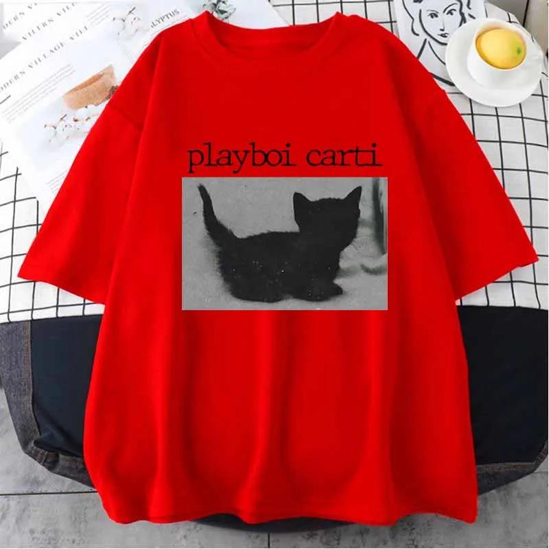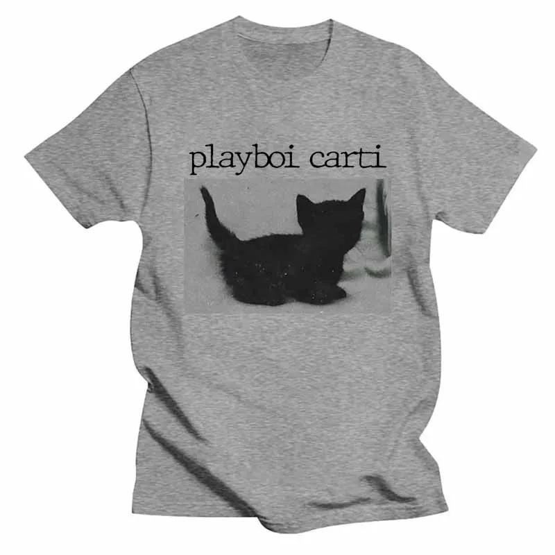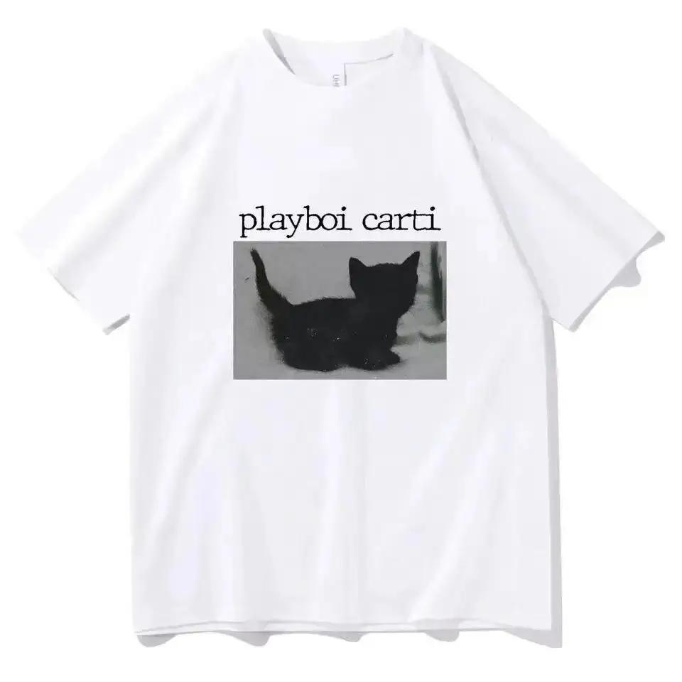 Летние футболки Playboi Carti большого размера в стиле хип-хоп с милым принтом кота в стиле Харадзюку, обычные мужские топы, качественная футболка в стиле рэпера, спортивная футболка