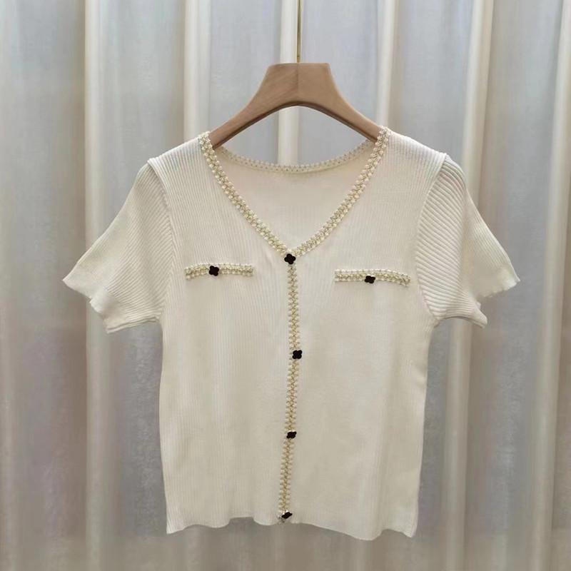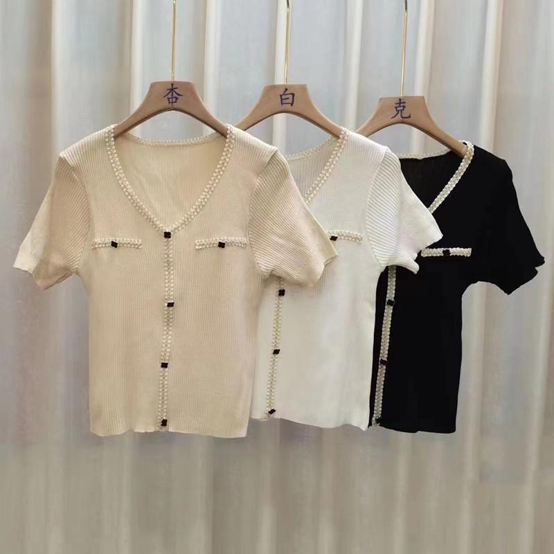 Модный вязаный свитер женский с короткими рукавами футболка женская весенне-летняя топы с V-образным вырезом свободные тонкие секции повседневные основные облегающие пуловеры футболки