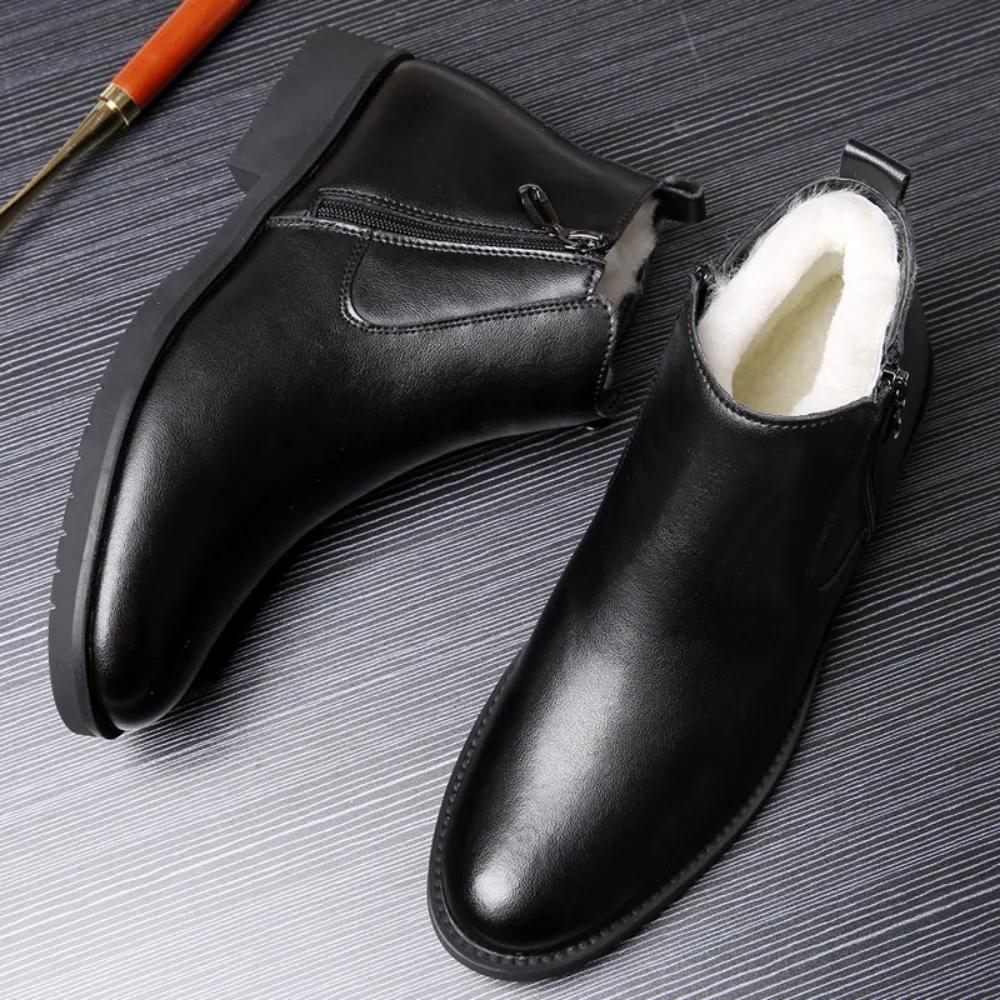Мужские ботинки Осенние и зимние ботильоны Мужская хлопковая обувь Кожаные ботинки с высоким верхом Повседневная обувь Мужская кожаная обувь Мужская обувь