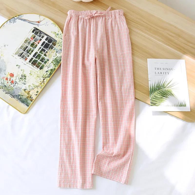 Весна/Лето 2026 Новые брюки для сна для пар 100% Хлопковая марля Парные брюки Тонкие Простые Клетчатые Домашние брюки Милые штаны