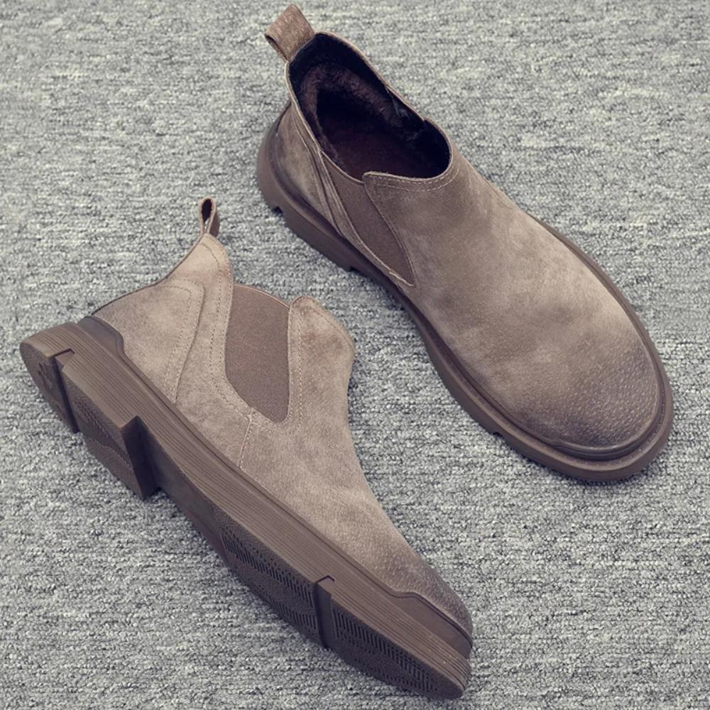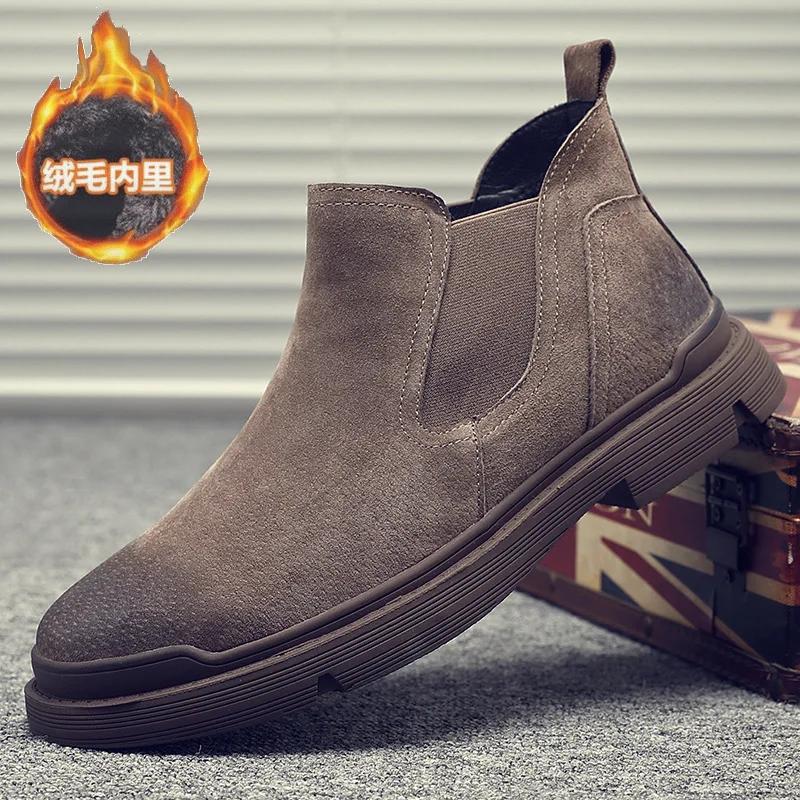 Мужская обувь осень-зима бархатные теплые ботинки челси мужские кожаные ботинки мужская рабочая одежда высокие ботинки сохраняющие тепло ботильоны