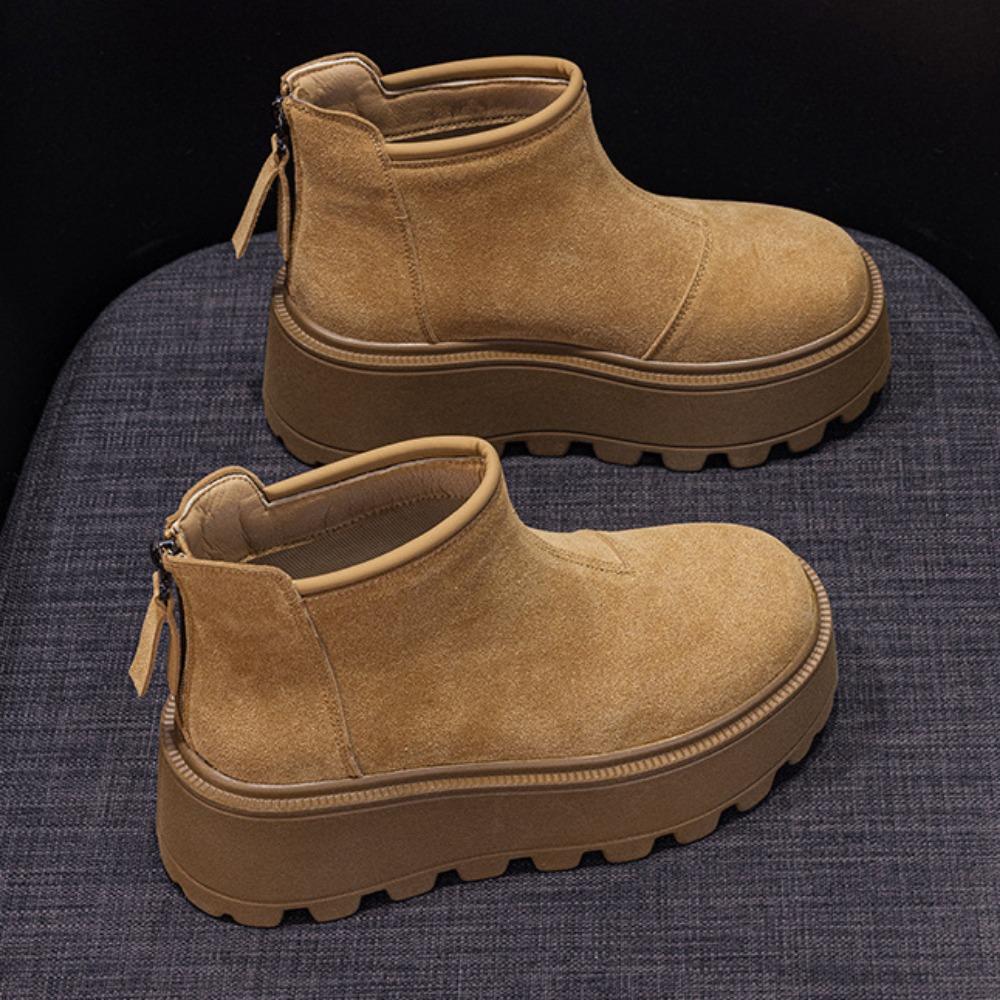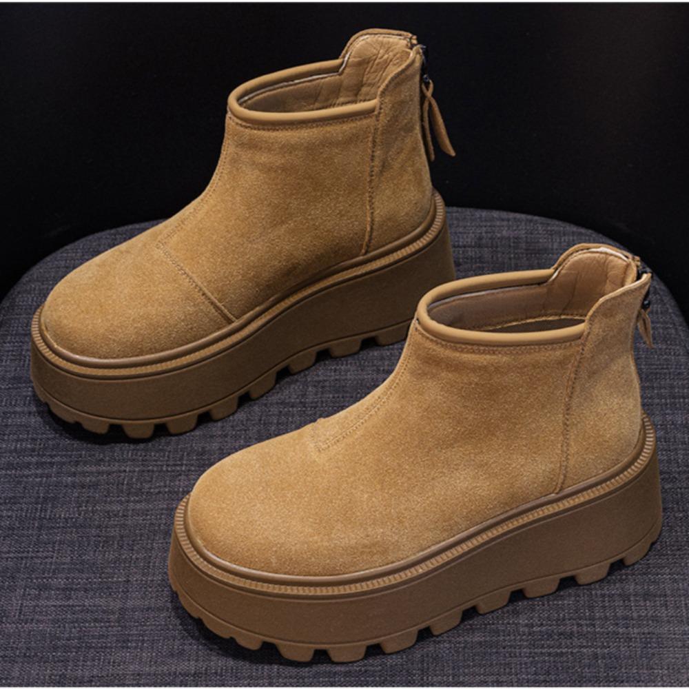 Зимние ботинки женские 2025 года, повседневная мода, универсальные, низкие, теплые, короткие, женские ботинки с молнией сзади, коричневые туфли на платформе