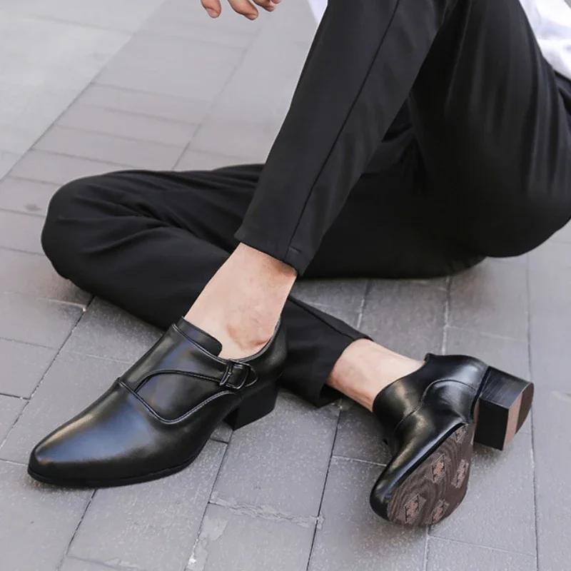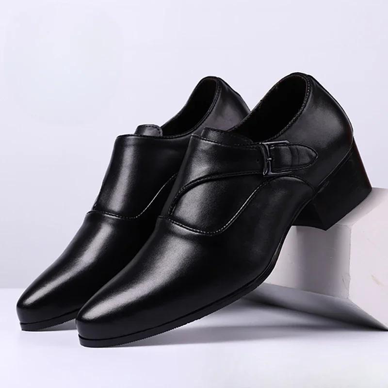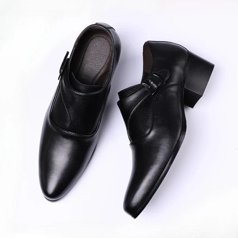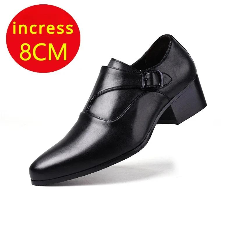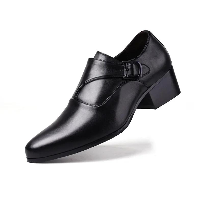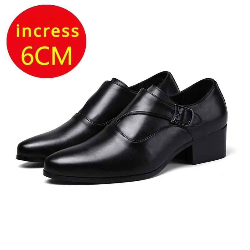 Мужские туфли из натуральной кожи, деловые туфли для мужчин, увеличенная высота 6 см, слипоны с острым носком, классические оксфорды для мужчин