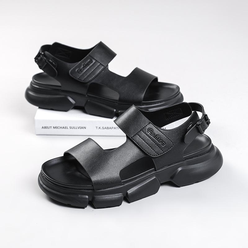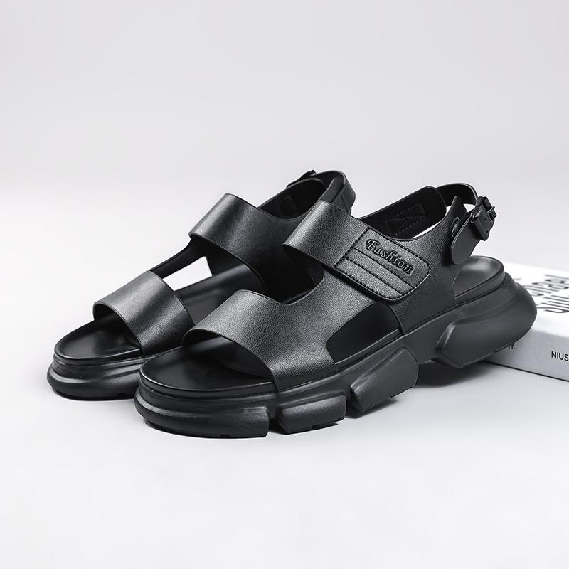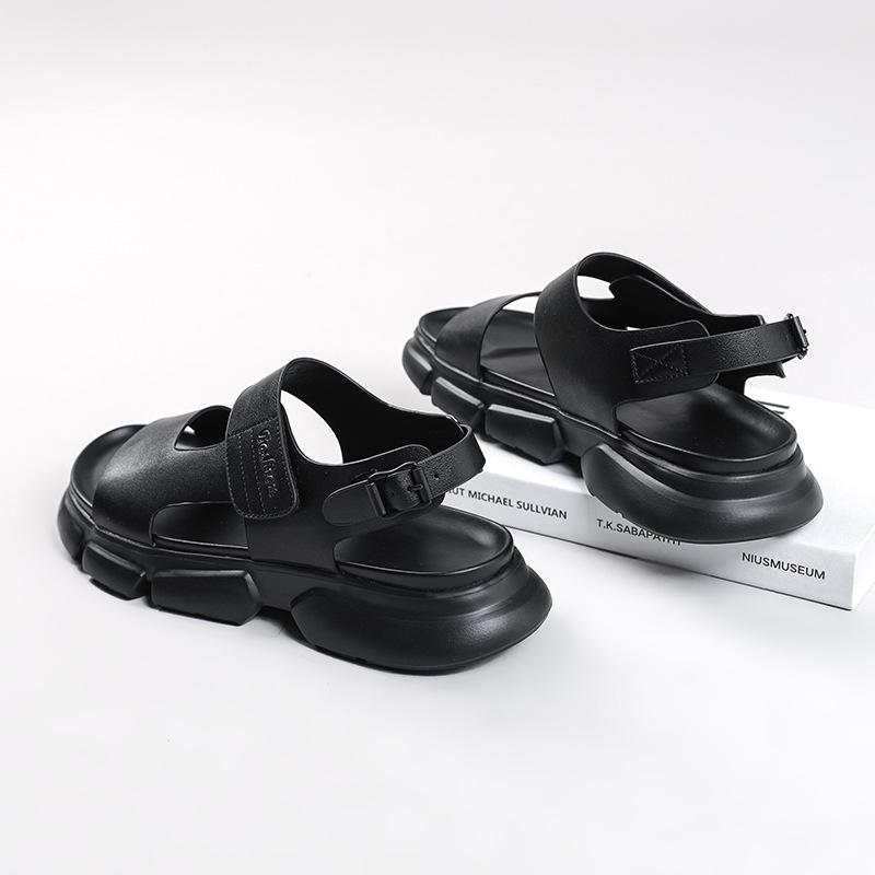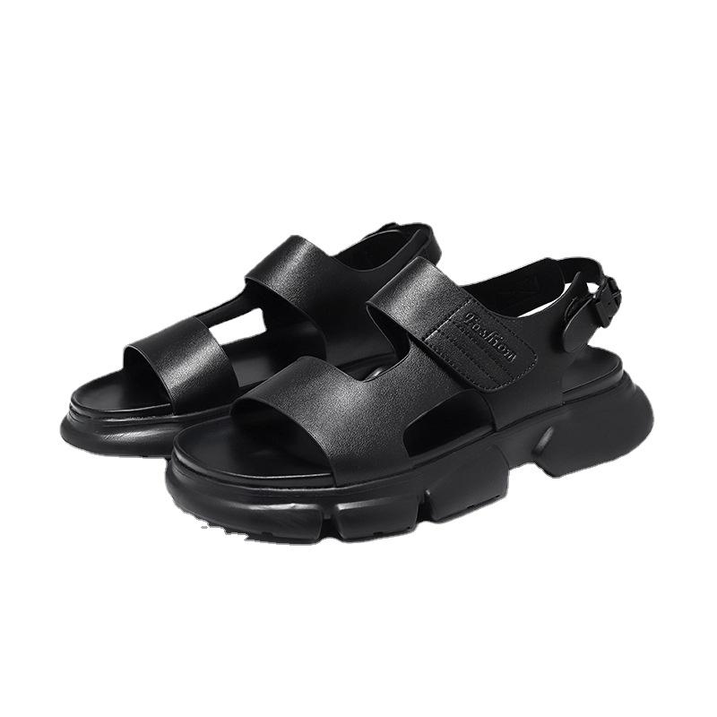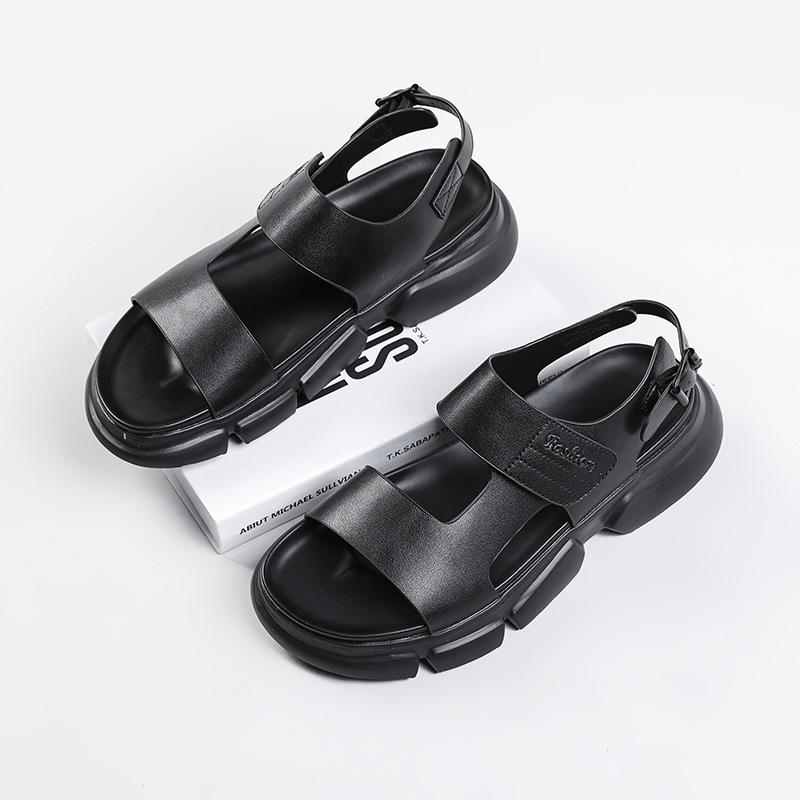 Летние мужские сандалии 2025 года, модная пляжная обувь с пряжкой, толстая подошва, мужские сандалии для отдыха на открытом воздухе, кожаные сандалии, мужская обувь
