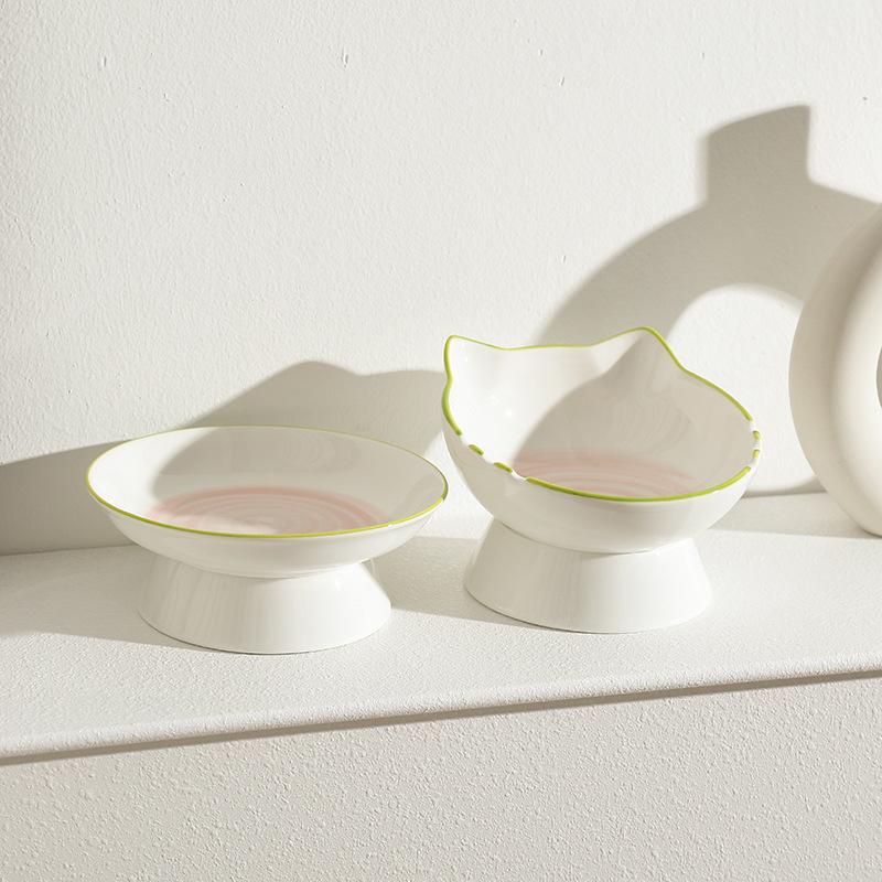 Миска для кошек Керамическая миска для кошачьего корма Миска для собак Миска для риса Миска для воды большого диаметра Миска с наклонным горлом Антидетонационные товары для животных