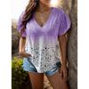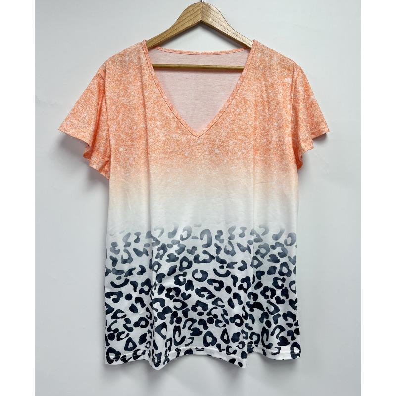 Футболка с короткими рукавами, женская, повседневная, в европейском и американском стиле, с V-образным вырезом, постепенно меняющим цвет, с короткими рукавами