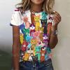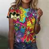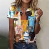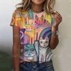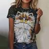2025 Летняя женская футболка с рисунком милого кота, топы, футболки, женская модная одежда с коротким рукавом, повседневный стильный наряд
