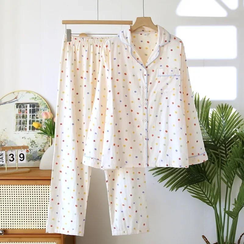 Новый женский пижамный комплект весна/лето 2026 года 100% хлопок с длинным рукавом и длинными брюками, комплект из двух предметов: кардиган и домашняя одежда для сна