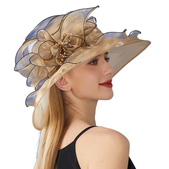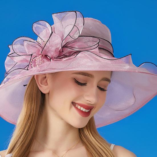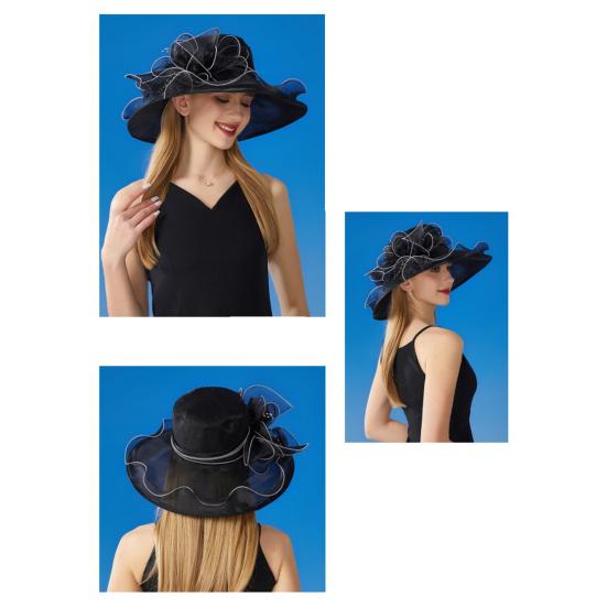 Варианты двойного ношения: Шляпа от солнца из органзы обеспечивает два стильных варианта ношения в одном. Выбирайте широкополую шляпу из органзы, украшенную крупными цветами, или превратите ее в шикарный головной убор с помощью съемного цветочного аксессуара.. Универсальная и модная, эта шляпа просто необходима любому человеку, следящему за модой.